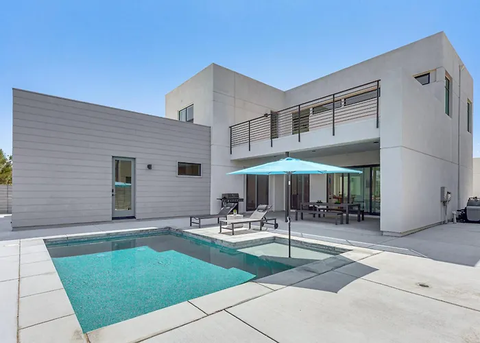 Cet établissement Villa Luxe Oasis Modern Mtn-View Gem In Palm Springs! est niché à 13 minutes à pied de Desert Highland Park et propose un bain chaud. Bénéficiant d'un accès à une terrasse, cette villa vous invite à visiter le parc Ruth Hardy, situé à 2 km.